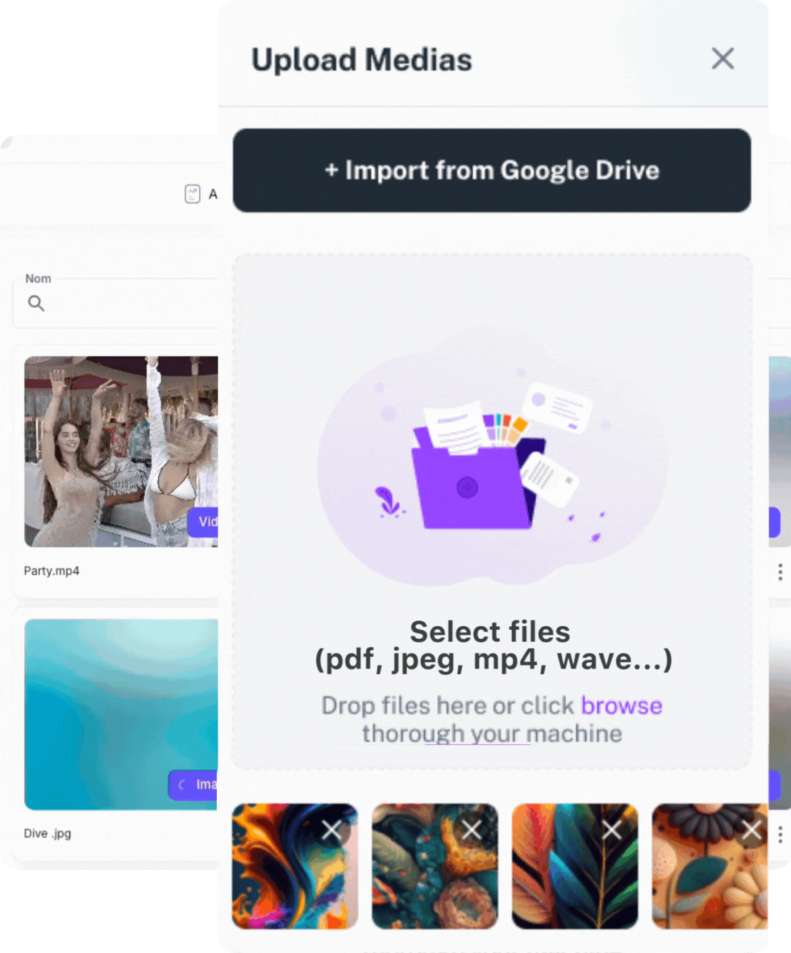 Glisser-déposer depuis n'importe quel appareil : PDF, image, vidéo ou autre.